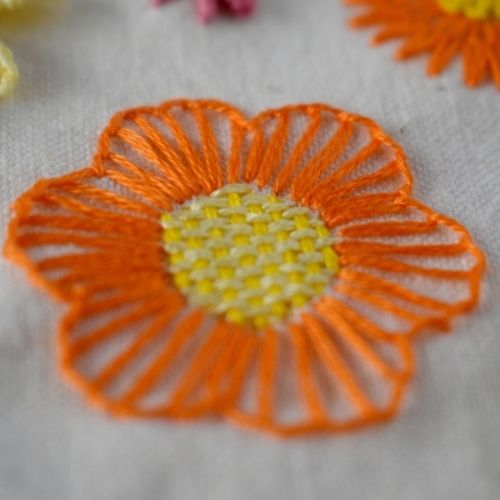 Beginner flower embroidery with Blanket and Weave stitches