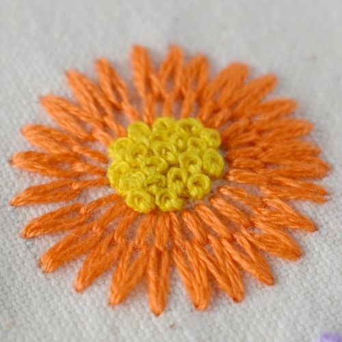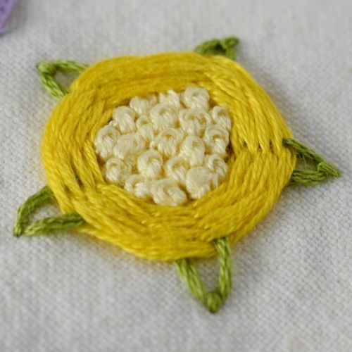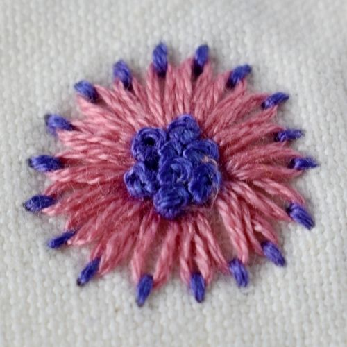 5. Fill the center of the flower with dense French knot stitches.